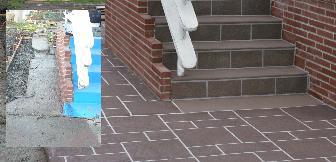 We offer modern polymer-modified overlay systems, to restore AND beautify your existing concrete. Here's an example application, typical of many we've worked on. Note discolored old concrete with cracks and sides added with a different, aggregate finish.