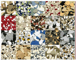 Color chips/flakes are used for seamless resin-based flooring and wall coatings such as epoxy and polymers. Various sizes and color blends available. We have wholesale lots of TORGINOL paint flakes in most colors and combinations, at heavily discounted prices.